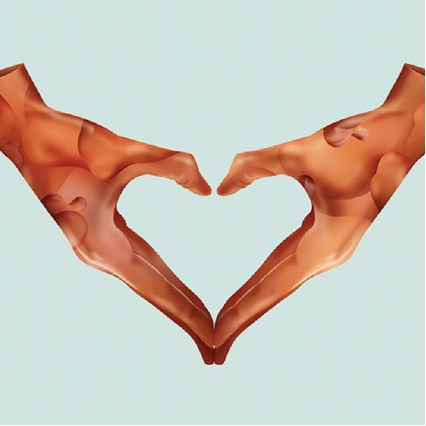 このカードは様々な場所で活躍されている人たちや、中立な立場で仕事をしている人たちの為のデザインです。手で形作られたシンメトリーなハートのモチーフは人が第一ということを表しています。