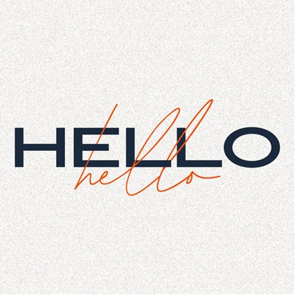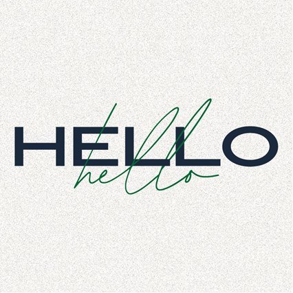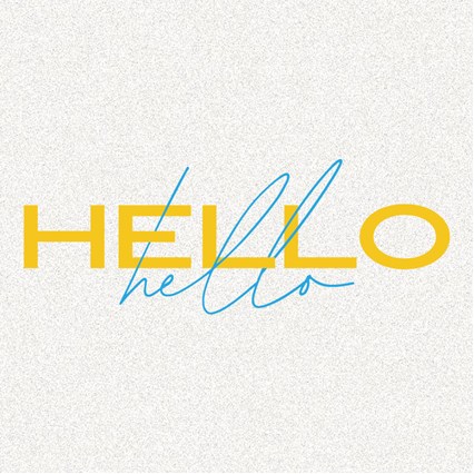 大胆な "HELLO"のデザインのバランスを取るために背景をソフトなテクスチャに仕上げました。合わせて手書きのタイポグラフィを使用したレイアウトにしています。個性を表現すると共に、人々に歓迎の気持ちを与えるデザインです。