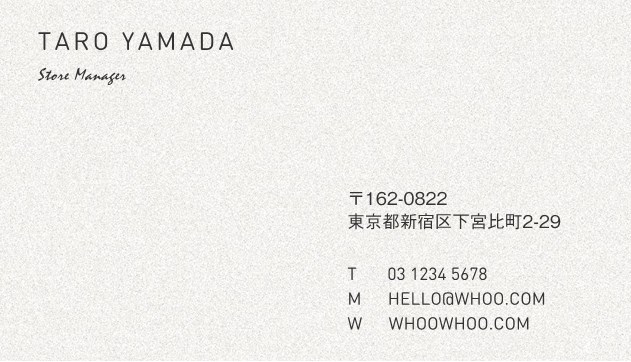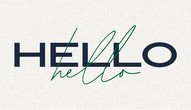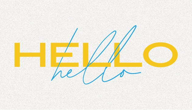 大胆な "HELLO"のデザインのバランスを取るために背景をソフトなテクスチャに仕上げました。合わせて手書きのタイポグラフィを使用したレイアウトにしています。個性を表現すると共に、人々に歓迎の気持ちを与えるデザインです。