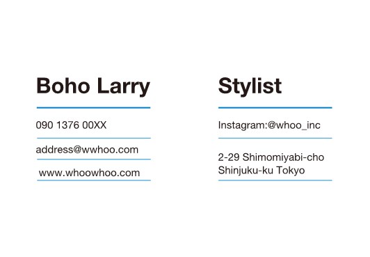 ブルーをアクセントに効かせたシンプルですっきりしたデザインです。シンメトリーの構造を持つレイアウトは、安心感を与えてくれます。カジュアルにもフォーマルにも、活躍できるでしょう。