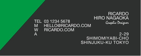 活気のある色の付いた紙をもう1層追加したデザインです。これにより名刺デザインの遊び心のあるアプローチとなっています。
