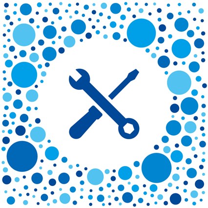 大胆でカラフルなこのデザインは、水と自然を象徴するさまざまな円から成る印象的なパターンが特徴です。このパターンはデザインの焦点となる工具のアイコンを囲むことで、デザインを際立たせています。